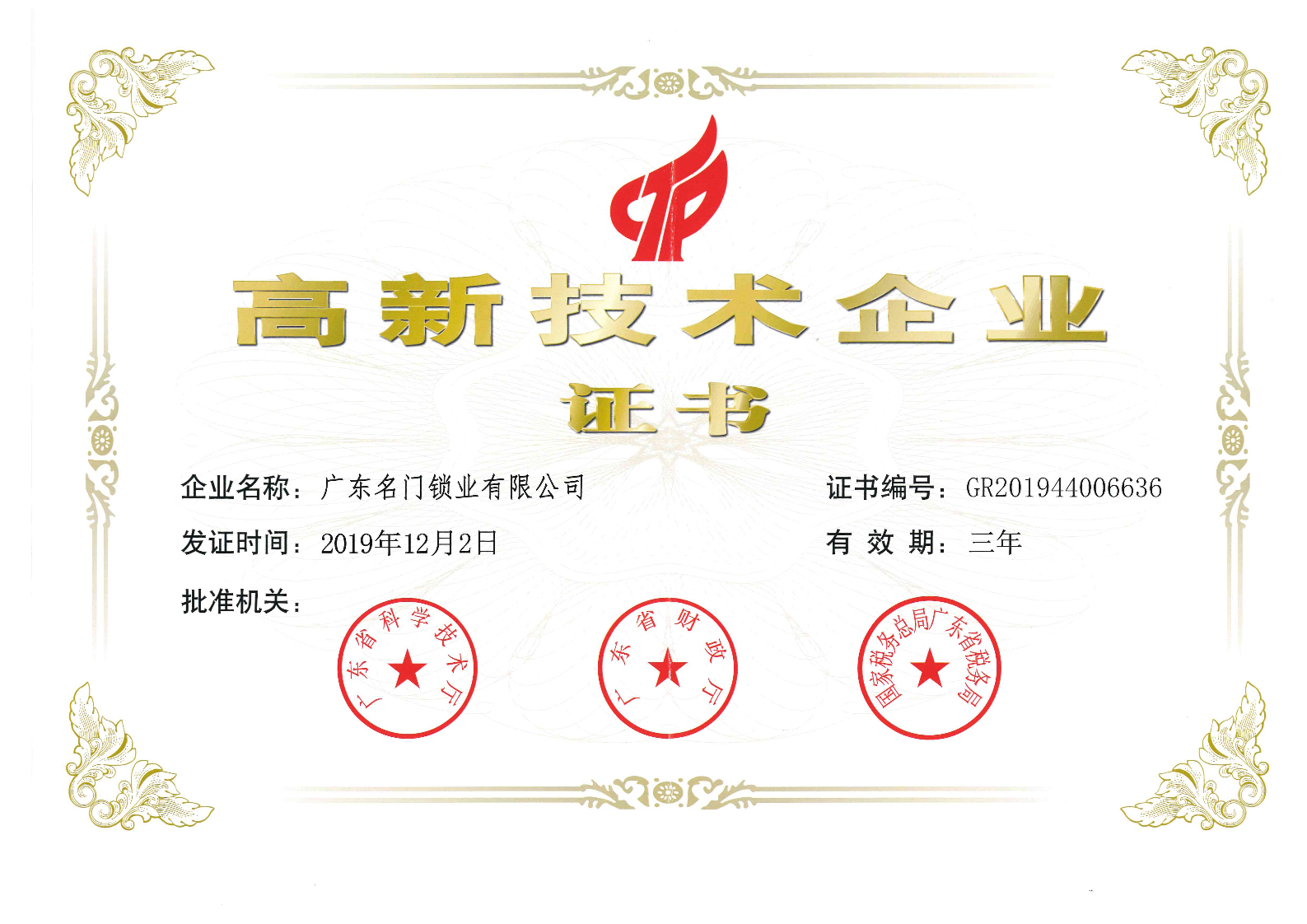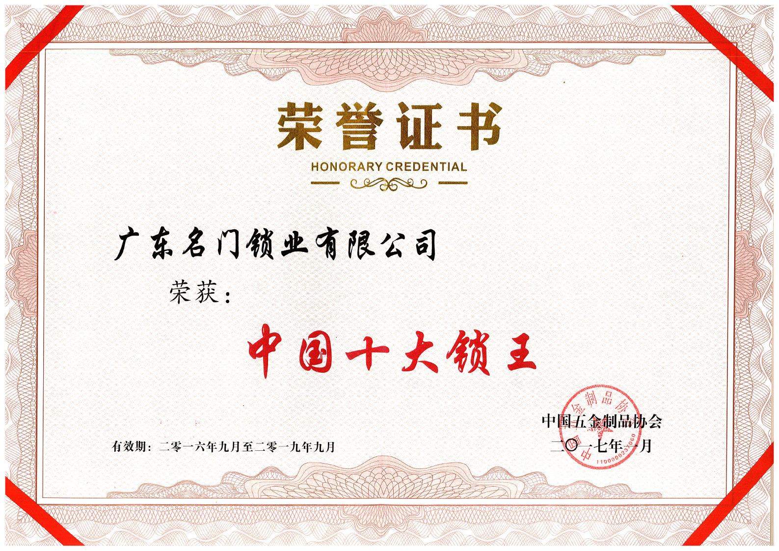 經(jīng)過多年的穩(wěn)健經(jīng)營和快速發(fā)展,名門收獲了一系列來自外界的肯定,先后榮獲“高新技術企業(yè)”、“廣東省名牌產(chǎn)品”、“廣東省省級企業(yè)技術中心”、 “中國十大鎖王”、“年度最佳品類創(chuàng)新獎”等一系列榮譽。